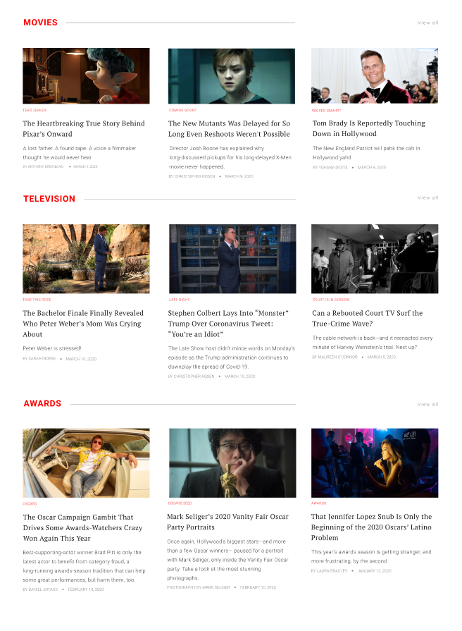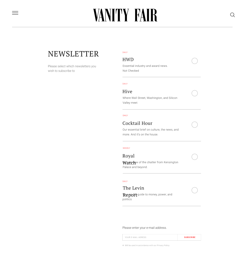 Vanity Fair is an American magazine devoted to politics, fashion, and other aspects of mass culture. The main task was to make the design cleaner and more user-friendly